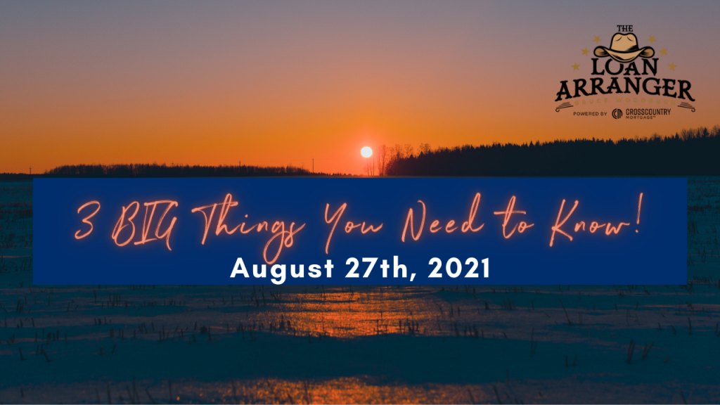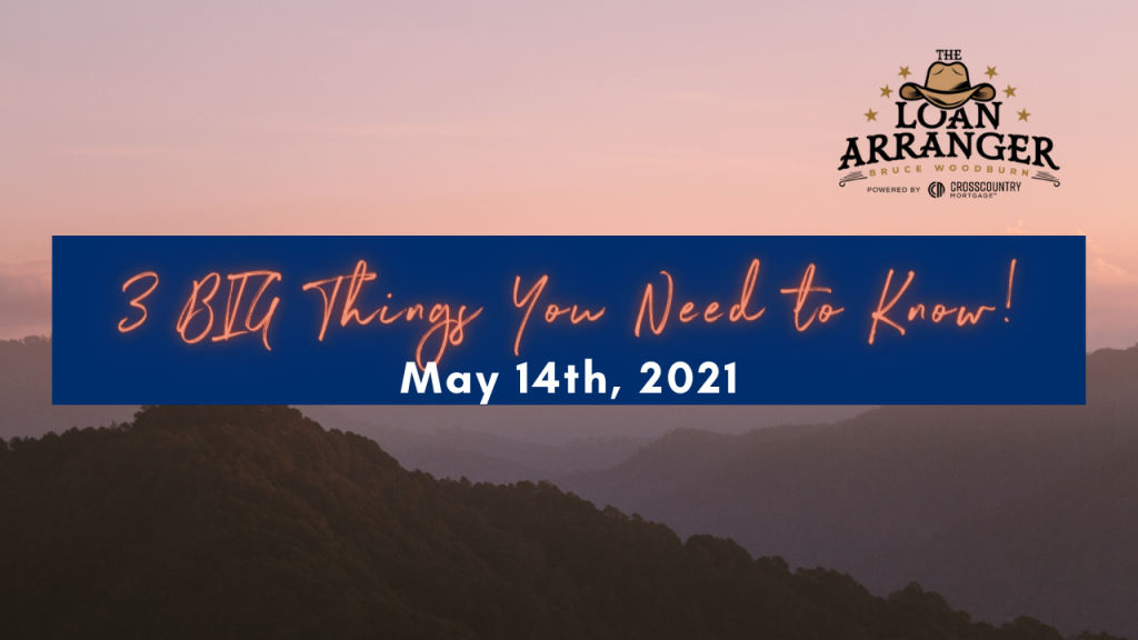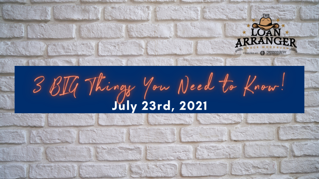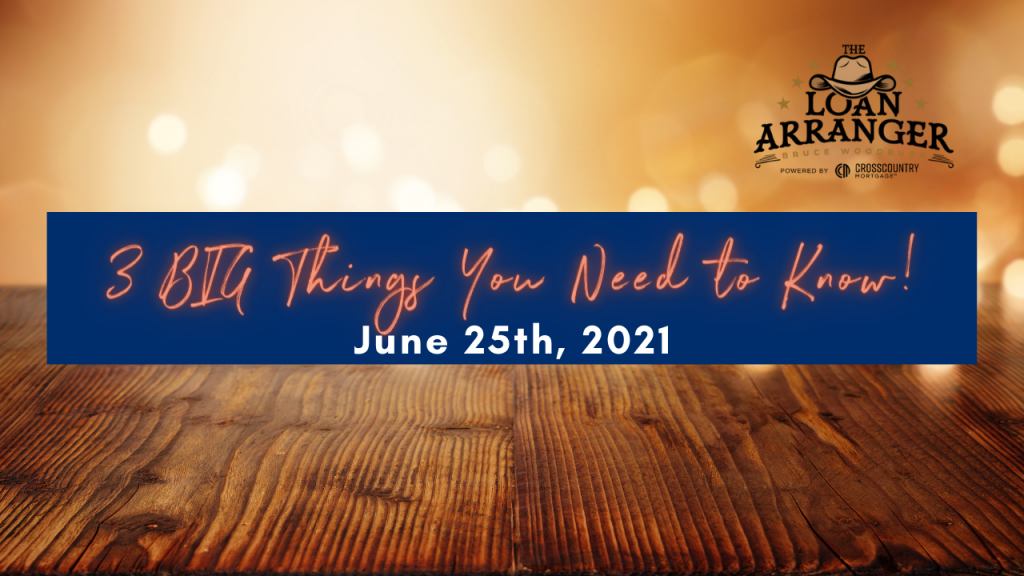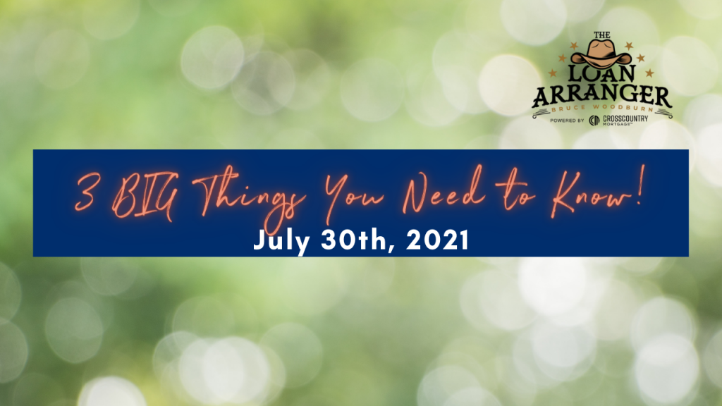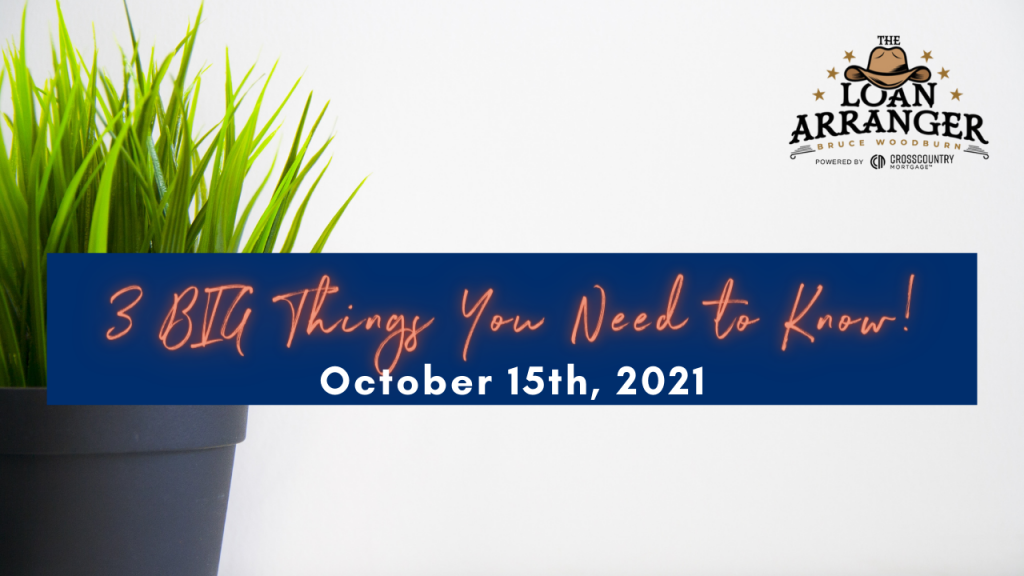 Hey there, Bruce Woodburn with CrossCountry Mortgage and it’s time for the three big things you need to know. I hope you find that my videos are informative to help…