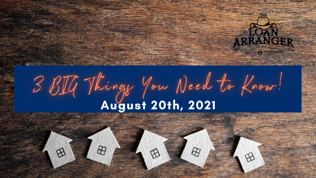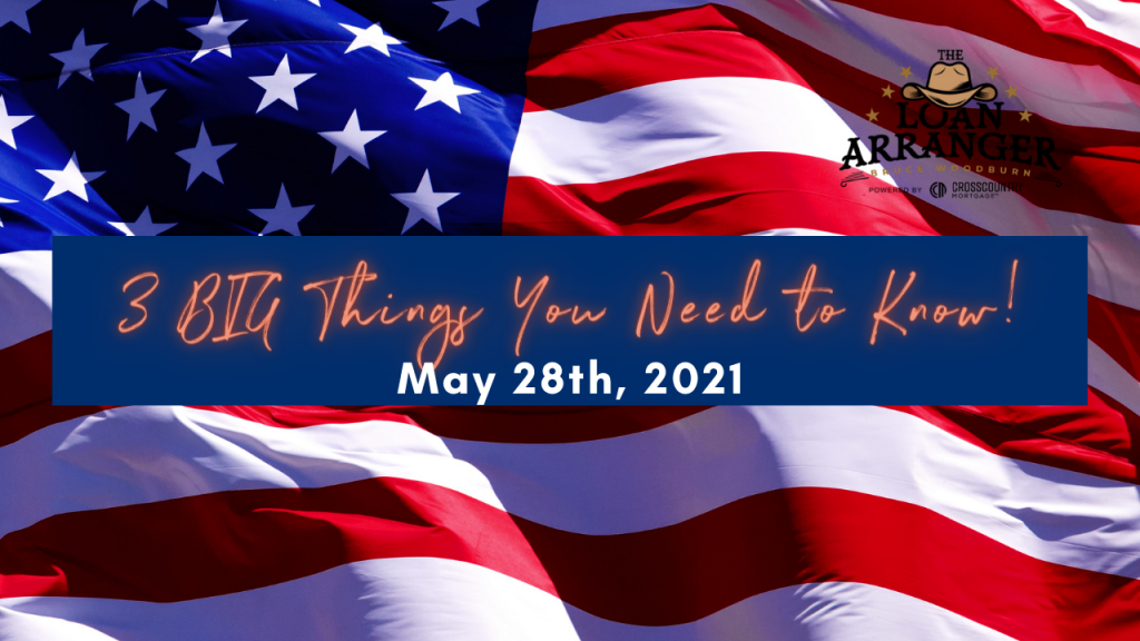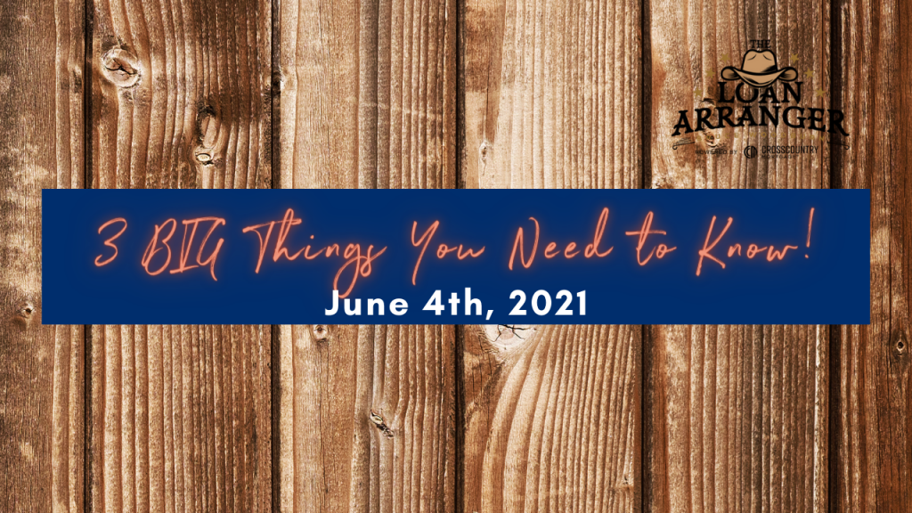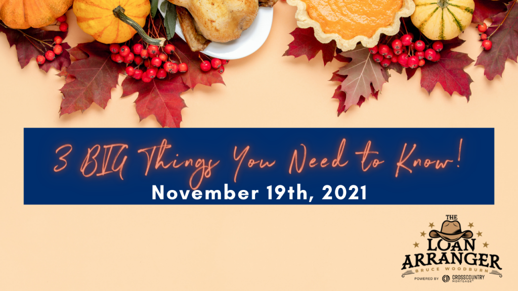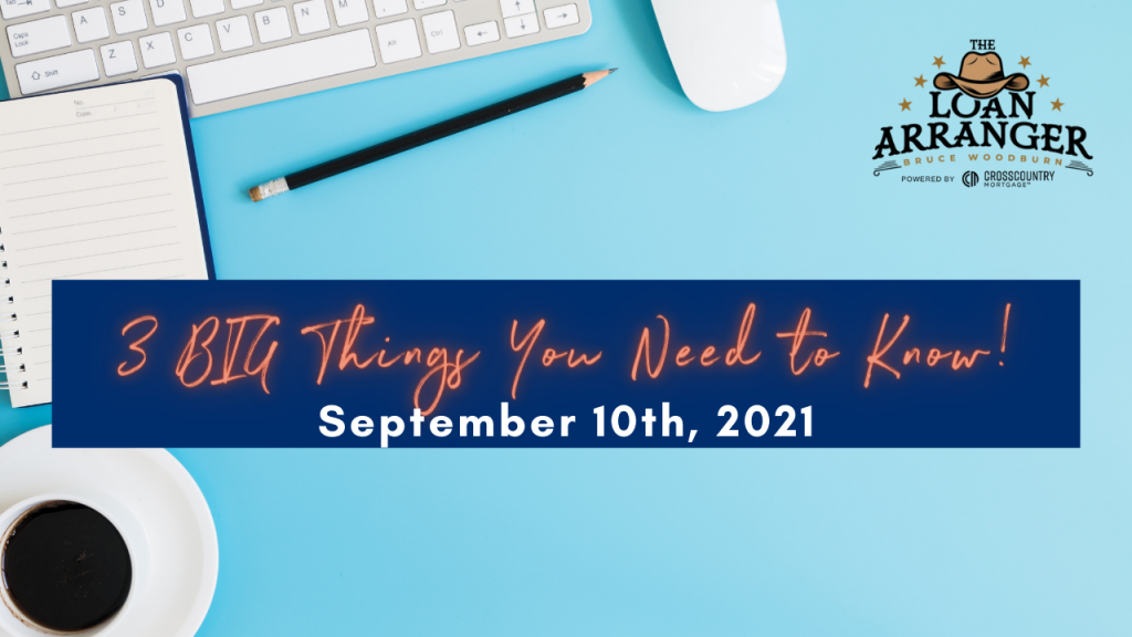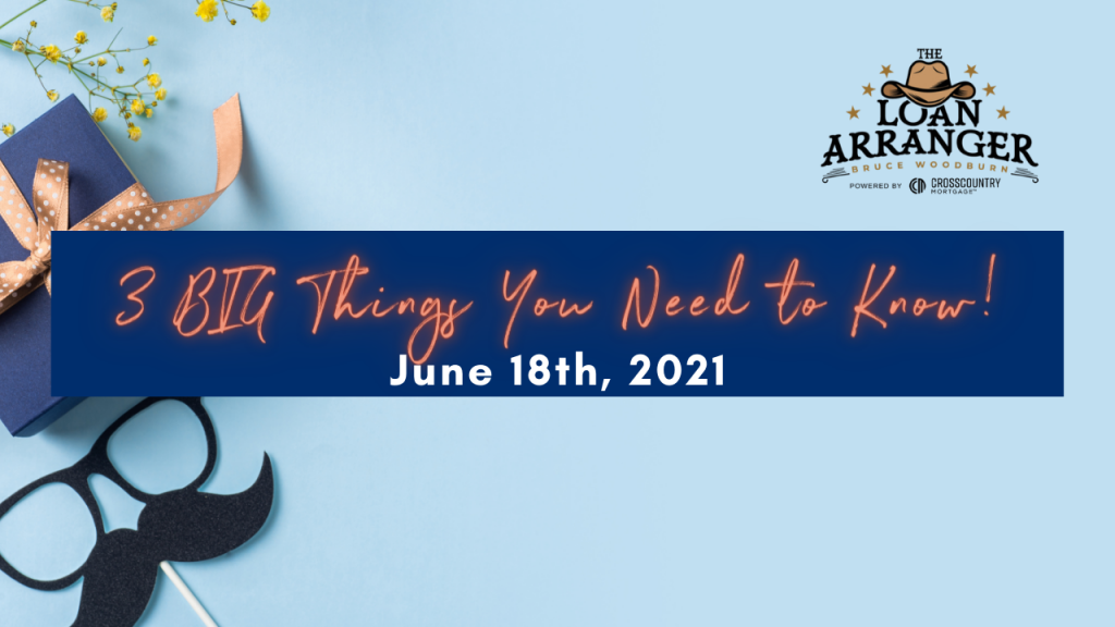 Hey there, Bruce Woodburn with CrossCountry Mortgage and it’s time for the three big things you need to know. I hope you find that my videos are informative to help…