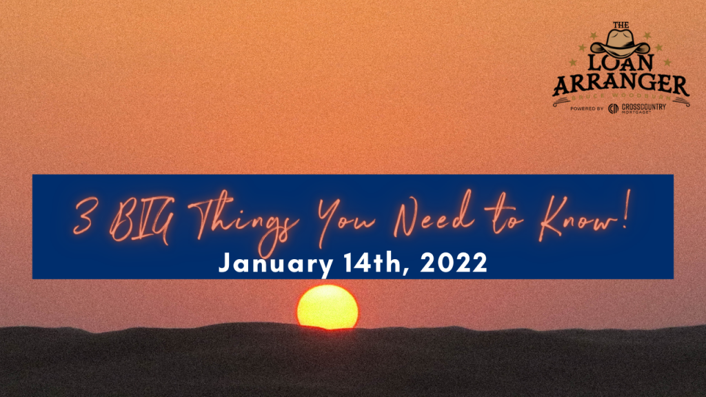 3 Big Things: What are interest rates doing?, Homebuying Class: Wednesday 1.26.22 @ 6pm and Subscribe to Bruce Woodburn, The Loan Arranger on YouTube.