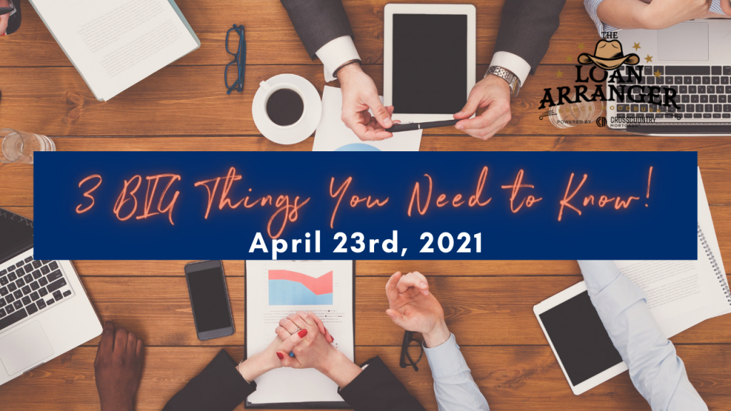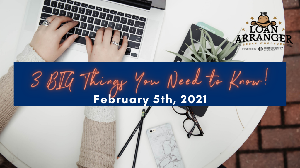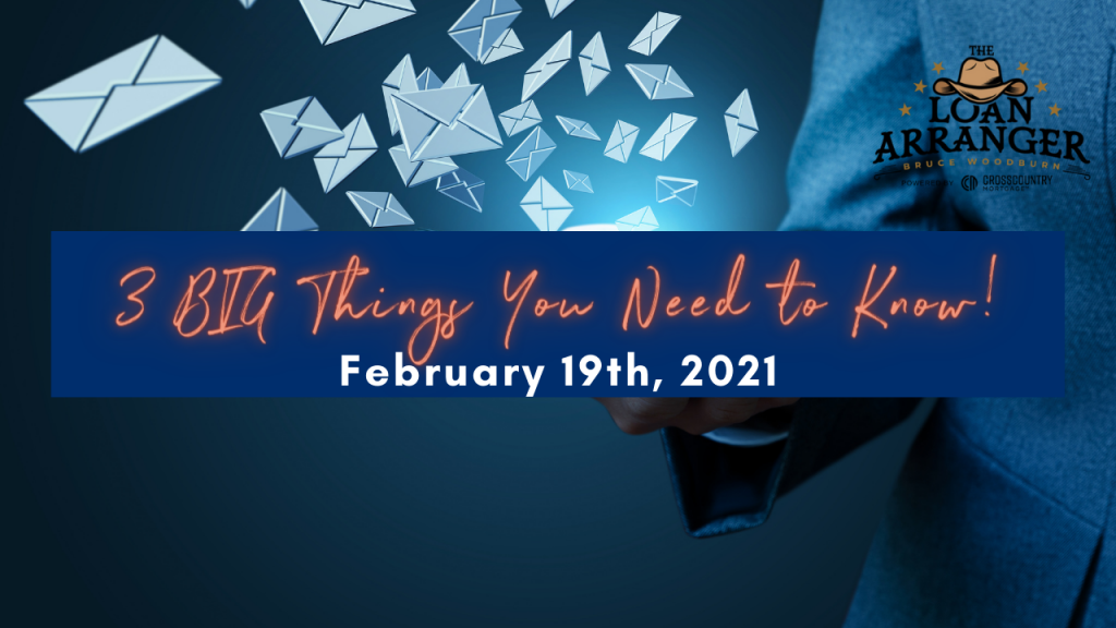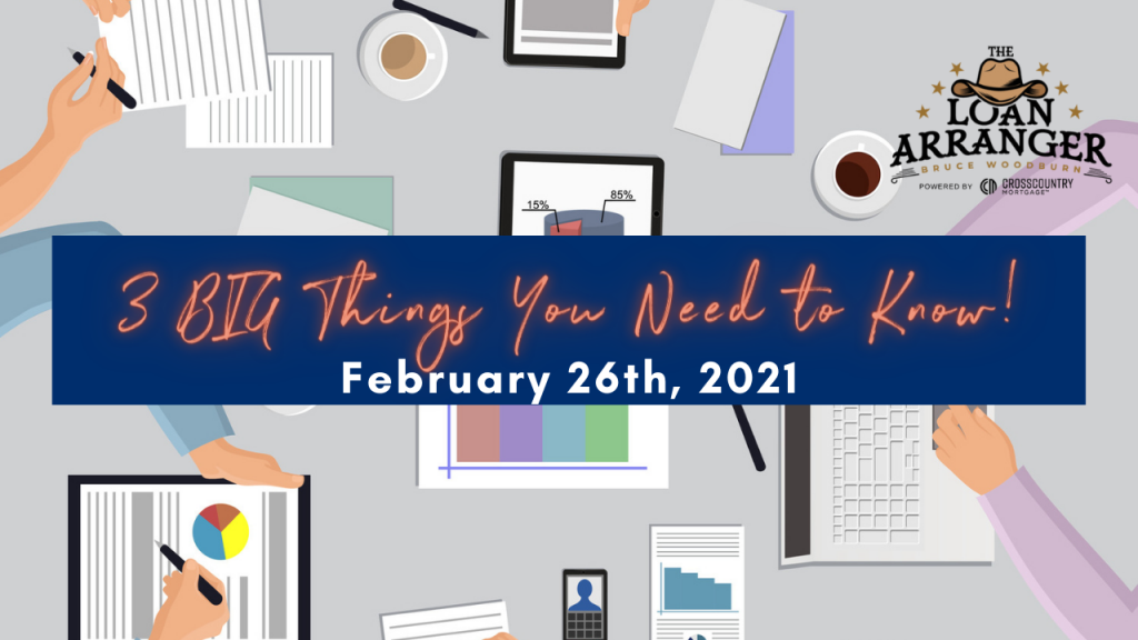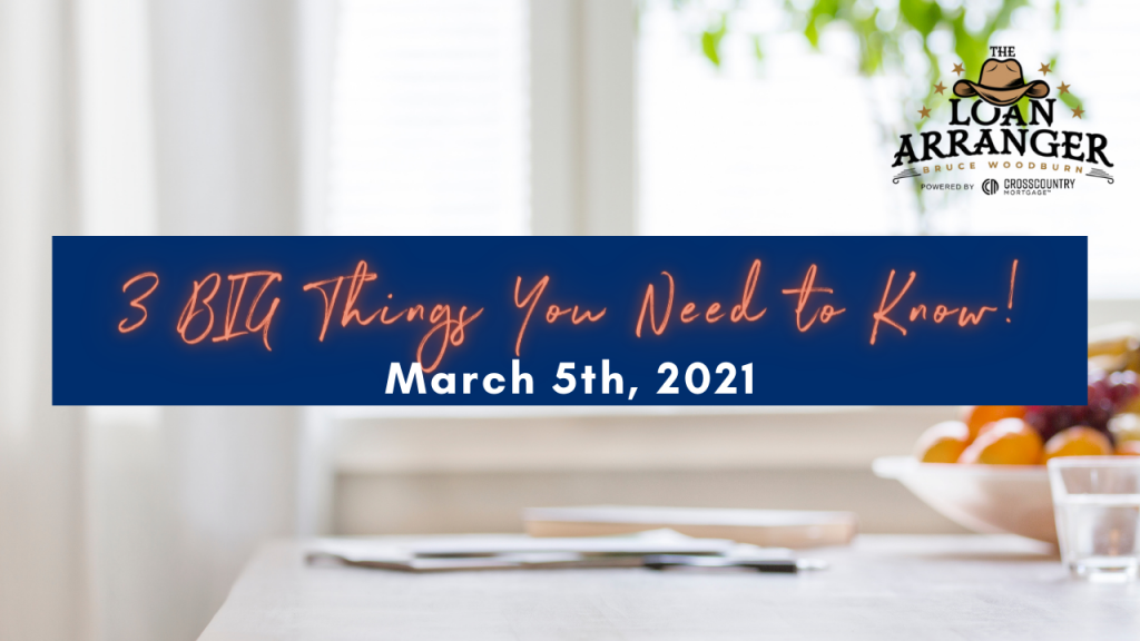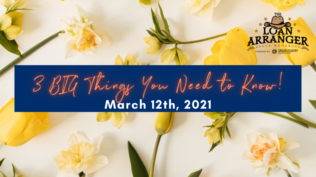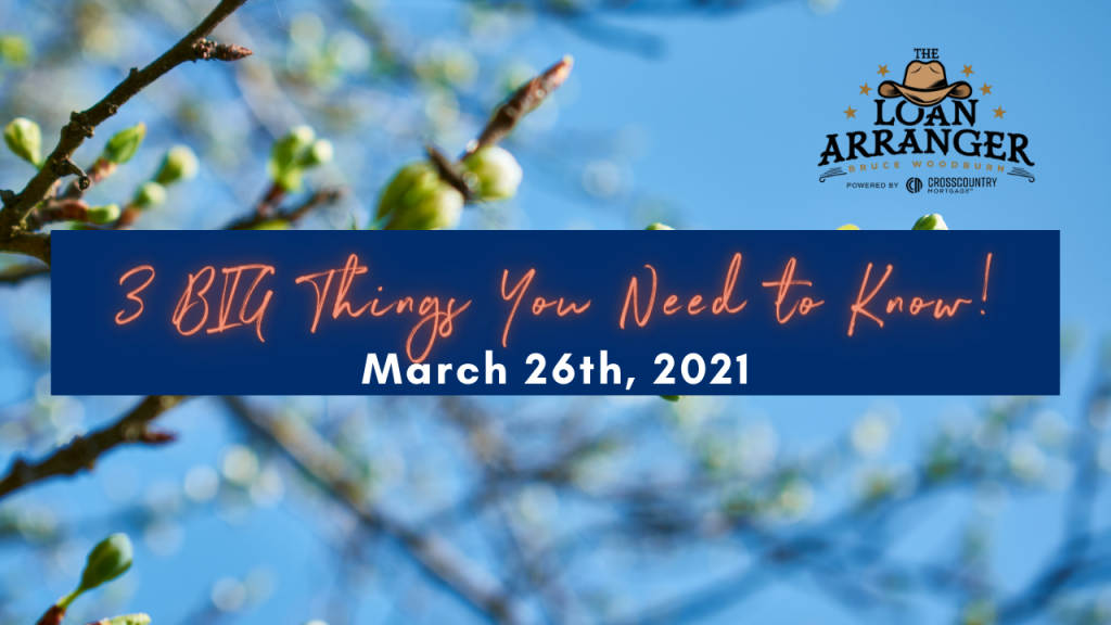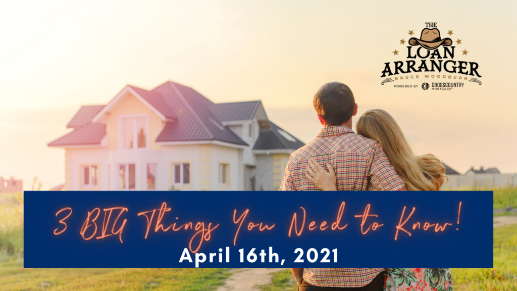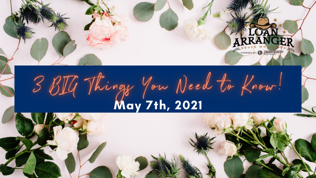 Hey, it’s Bruce Woodburn with CrossCountry mortgage. It is Friday May 7th, and these are the three big things you need to know. I’m always committed to making sure my…