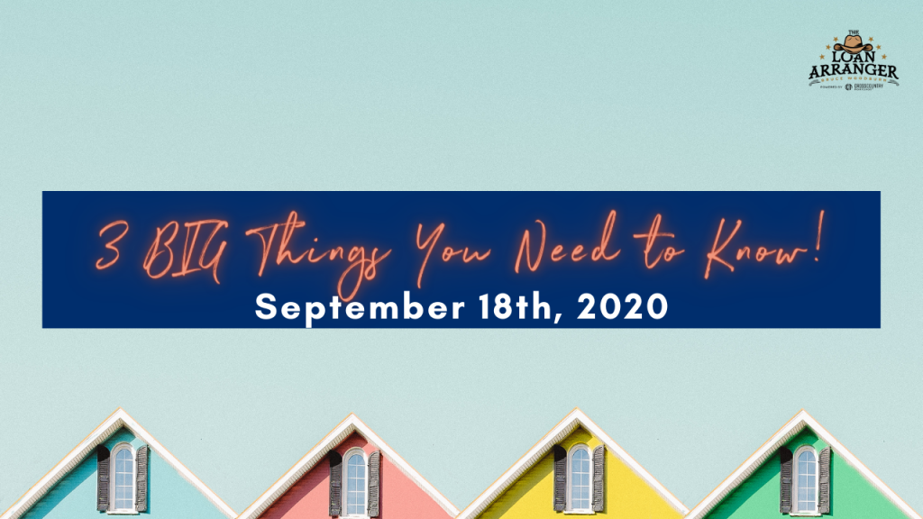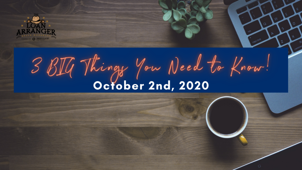 Hey there, it’s Bruce Woodburn with CrossCountry Mortgage with the 3 BIG Things You Need to Know. Today is October the 2nd I can’t believe it’s already October, the holidays…